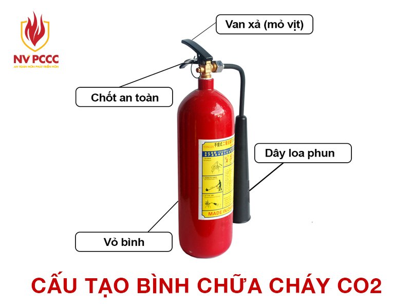 2. Cấu tạo bình chữa cháy cầm tay CO2